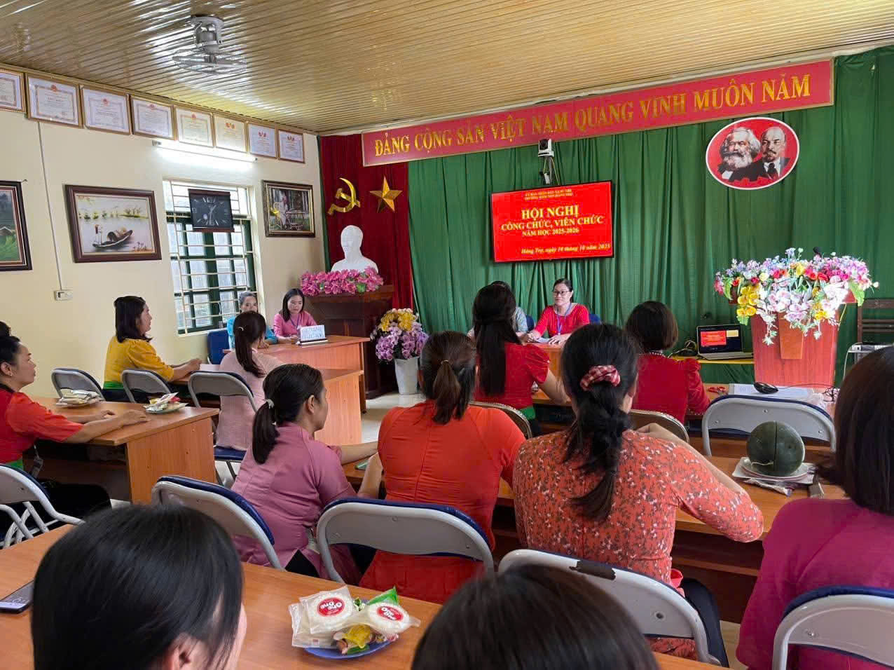 Bữa trưa dinh dưỡng cho trẻ tại trường mầm non Háng Trợ