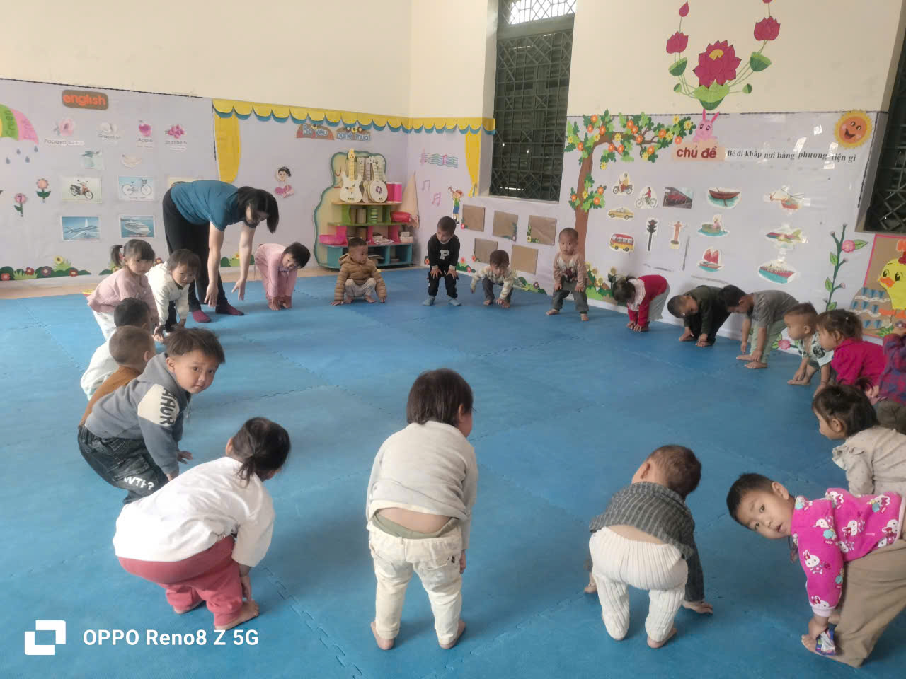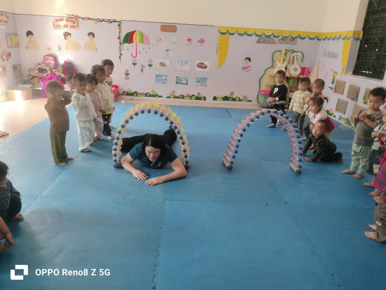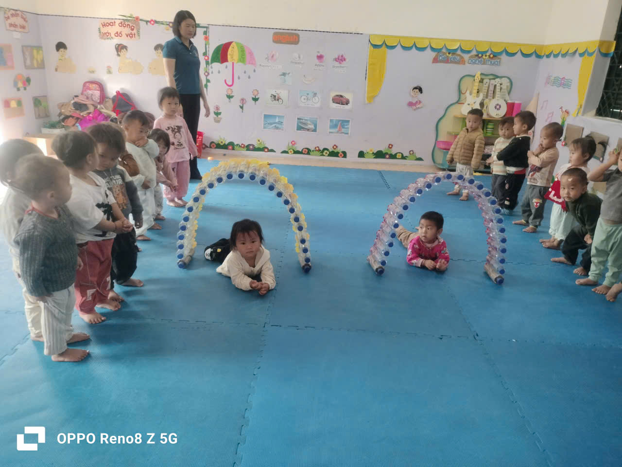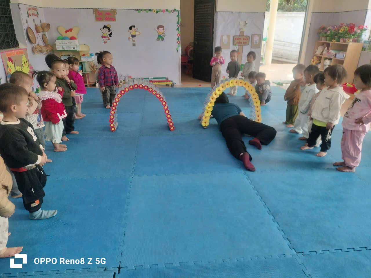 Hôm nay ngày 6 tháng 4 năm 2026 lớp nhà trẻ 24-36 tháng –Trung tâm tổ chức hoạt động học hằng ngày với vận động “Trườn chui qua cổng”. Với vận động này sẽ giúp trẻ rèn luyện được kỹ năng trườn, kỹ năng phối hợp chân tay nhịp nhàng.